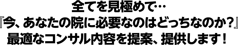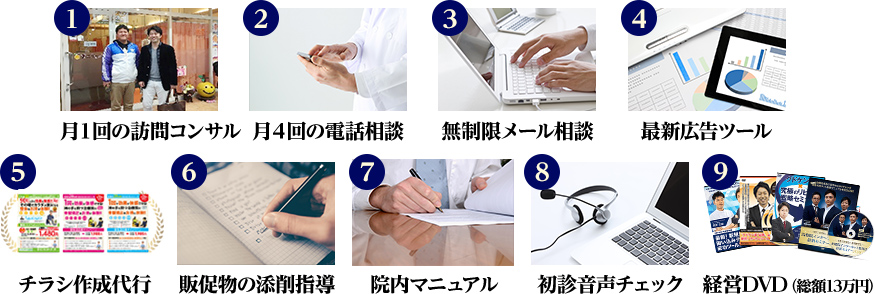 課題に合った個別指導、あなたの院専用のノウハウの提供、ツールの用意など…