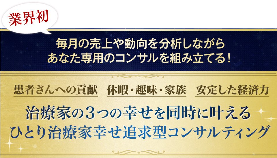 「ひとり治療家しあわせ追求型コンサルタント」のお名前と、コンサル料金の後払いシステム。「これ以上の条件はない!」「何としてでもやりきって結果出す!」必死でした。