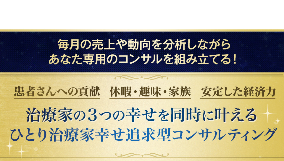 巷にあふれる経営論ではなく、実際に結果のでる自分の院に合った経営イロハがわかることで不安が取り除かれ、それにより治療の効果も以前よりパワーアップし、リピート率も上がっています。