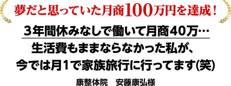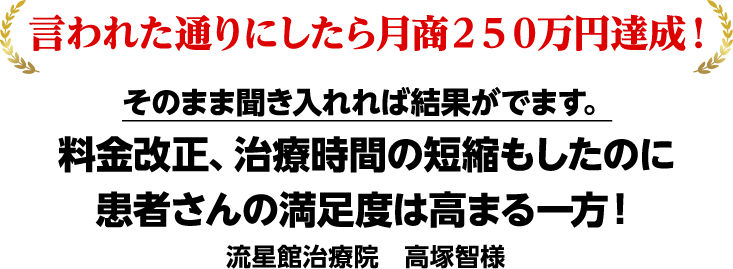 おかげさまで、施術が自分1人になっても月商は下がらず、コンサルをお願いして、