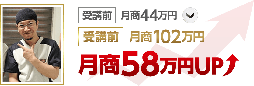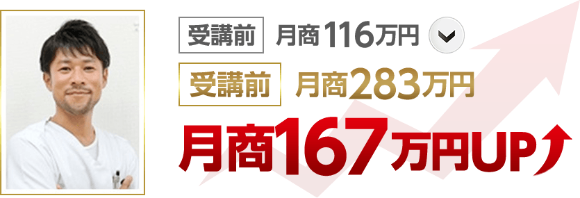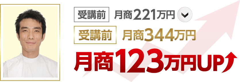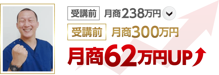 ですので、早ければ2ケ月目終了時から目に見えて、新規患者さんが増え、さらにそれと並行して行う治療院改善や、初回問診指導により、ご予約やリピート率アップし、売上が上がります。