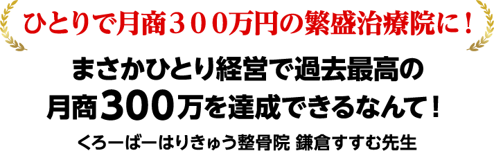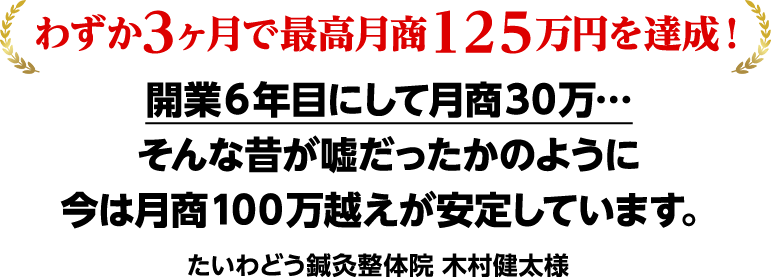 鍼灸は特に他の治療方法より売上を上げるのが難しいと考えている方が多いと思いますが、そんなことありません。鍼灸でも上げられるのですから、他の治療法でも私と同じように苦しんでいる方がいれば強くお勧めします。