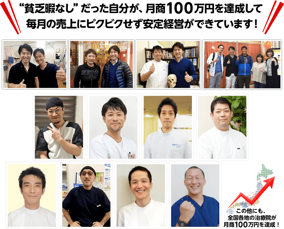 ですので、早ければ2ケ月目終了時から目に見えて、新規患者さんが増え、さらにそれと並行して行う治療院改善や、初回問診指導により、ご予約やリピート率アップし、売上が上がります。