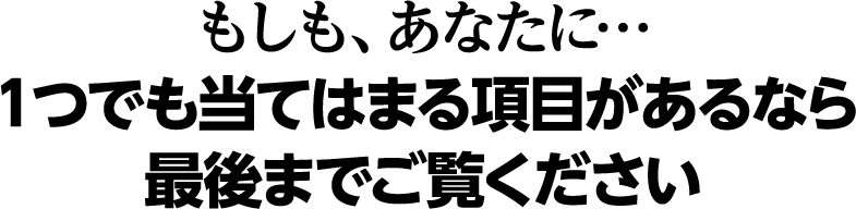 この中に1つでも当てはまる項目があるようでしたら、今からお伝えするお話をご覧いただくことで、