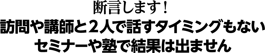 訪問や電話など…、直接あなたと話しあいながら先生の納得いく形で売上アップのノウハウをご用意いたしますが「その場ではやるというものの、やる気がなく行動できない」という場合は、当たり前ですが結果は出ません。
