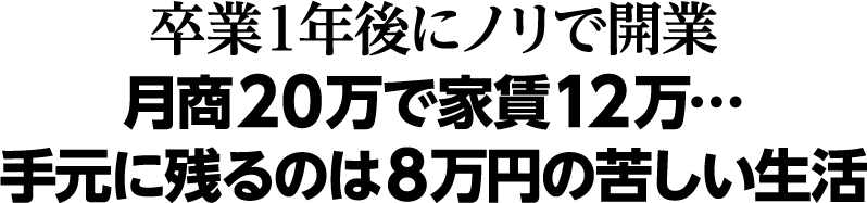 「頑張ればいつかは何とかなる」と信じて、試行錯誤して行動してるつもりでしたが、3年経っても売り上げは良くて40万前後。月々の支払いに追われ生活費もままならない状況でした。